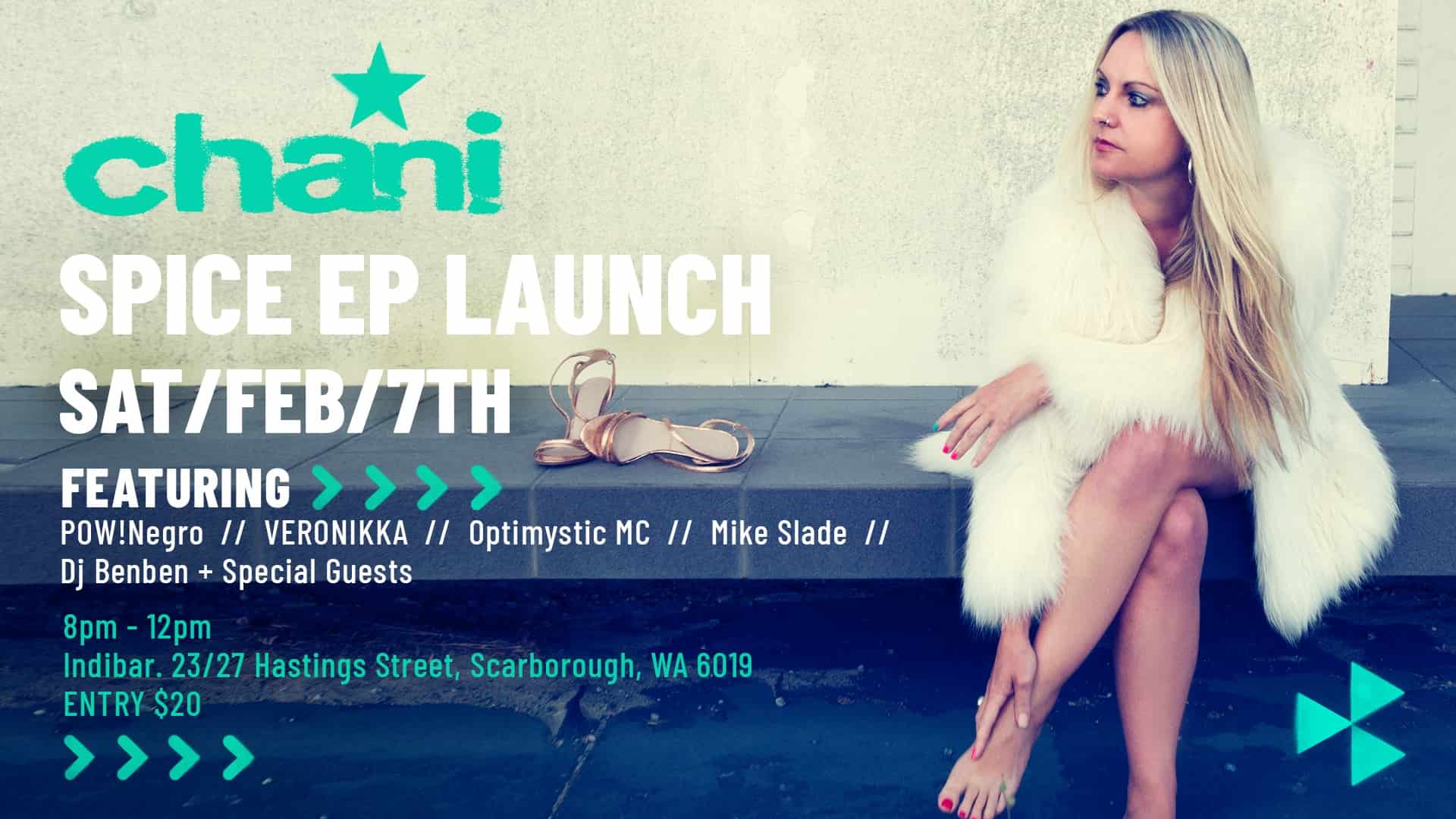West Aussie Hip Hop femme fatale, Chani, is known for never pulling punches on topics of women’s empowerment. Chani pushes the boundaries of Hip Hop with hard-hitting lyrics and cheeky raw honesty, as she effortlessly blends a cocktail of Oz Hip Hop, Funk and Electro Pop influences, all in her trademark laid back style.