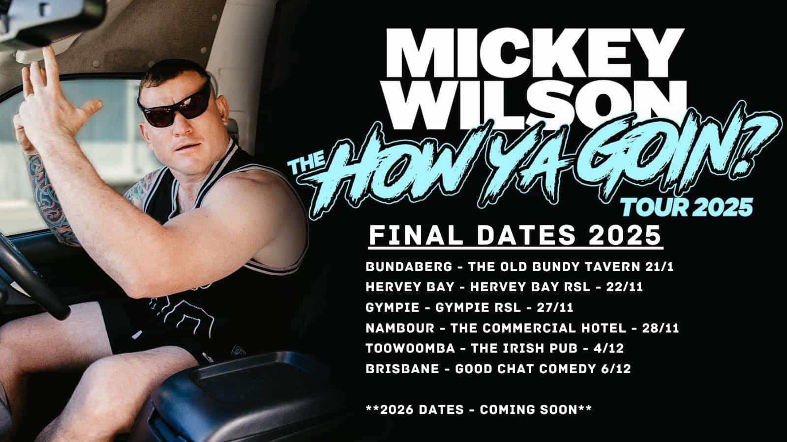 This Darwin-born larrikin takes the p**s out of everything: himself, his looks, his kids, and the clean freak inside him. A hard-shell Aussie dad with a soft, slightly unstable centre, Mickey brings quick wit, big energy, and brutal relatability.