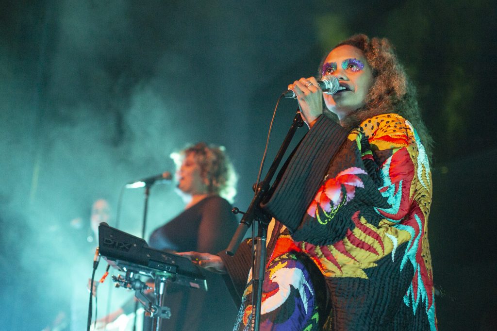 The first set saw the Papua New Guinean artist strip her songs back to their bones for an acoustic set comprising a keyboard and two back up vocalists. Minimal in its production, the set allowed the soul of the songs to shine through; akin to the type of understated yet invigorating sound you might stumble across in a dimly lit jazz club. That is, until NGAIIRE flexed her voice and filled the NGV Great Hall with its booming power.
