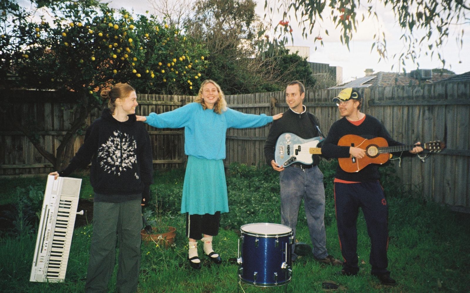 Beaming in on a group call from various parts of Naarm’s inner north, Cal Blackburn (vocals, bass, guitar), Jet Noonan (vocals, keys), Izzy Hardisty (vocals, drums) and Tino D’Onghia (vocals, guitar, bass) reflect on the week they spent in a shed, committing their debut record to tape.
