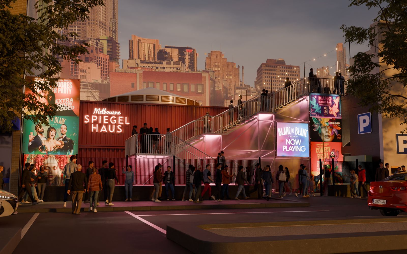 Spiegel Haus Melbourne opens on 29 October as a two-level entertainment precinct with a total capacity of 1,000 patrons. The venue includes a 380-seat Belgian spiegeltent, a 400-seat black box theatre, an open-air activation space and a rooftop dome bar. The precinct operates in partnership with the City of Melbourne and various arts organisations, running through winter 2026 before the site returns to its original use. Opening night showcases Blanc de Blanc Encore, the champagne-soaked cabaret and circus production.