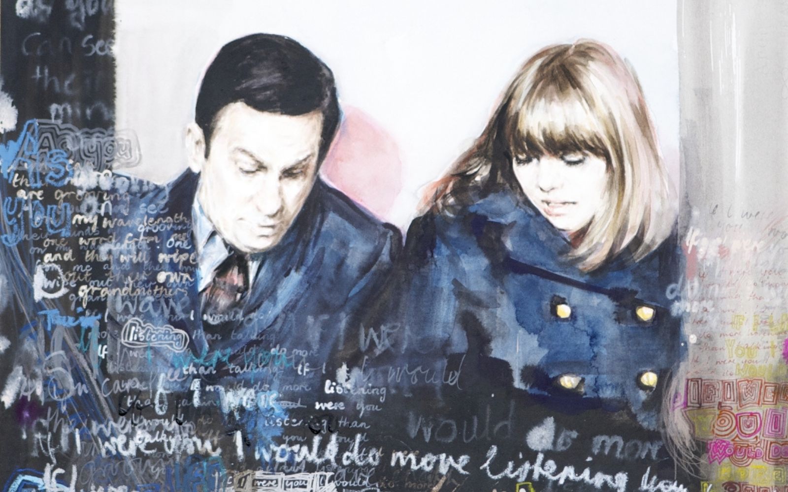 Lately, she’s been teaming up with her son Darcy Luker, inviting him to fill in the missing figures in her works. The result is a thought-provoking fusion of portraiture and abstract styles.