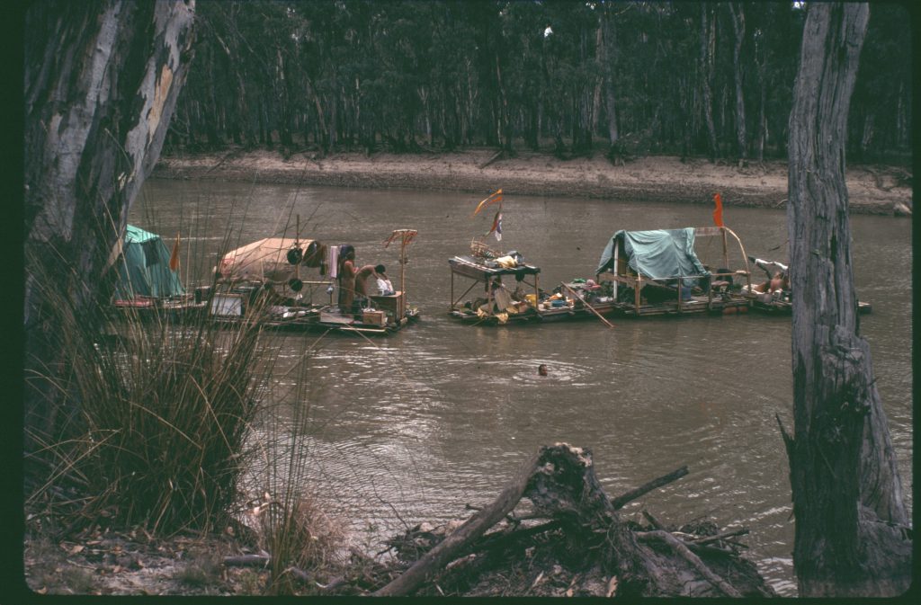 Teaching kids the art of instrument making and putting on performances, the ‘Pipi Storm’ community arts collective was born. After taking ten kids to a children’s community festival in Canberra, we eventually had 25 people on board for a project that became an important springboard for community arts development in Australia. I remember travelling down the Murray River on rafts and starting performances for kids.