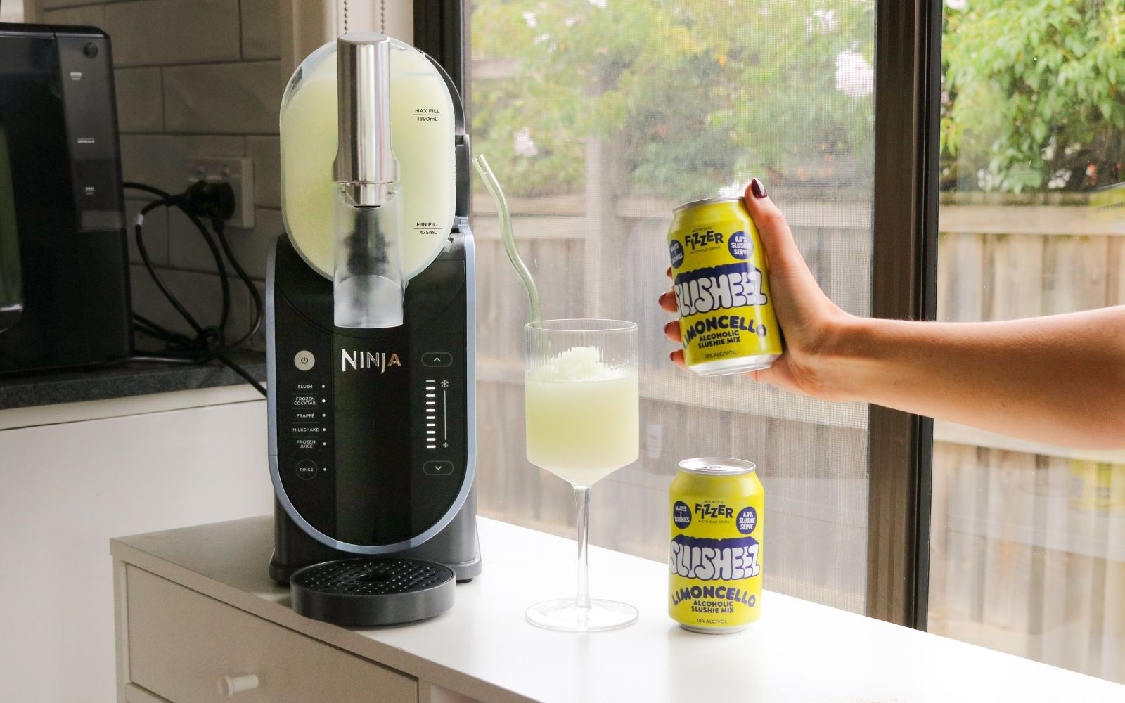 The concept is dead simple: pour one can of Fizzer Slusheez into your machine, add two cans of water using the empty tin as a measuring cup, and let it rip. Each can produces over a litre of finished slushie, meaning two cans will fill an entire machine — enough frozen booze for 14 people.
